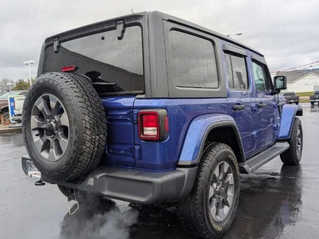 This Jeep Wrangler has many features and is well equipped, Remote Start, Rear View Back Up Camera, FULLY SERVICED, 3.45 Rear Axle Ratio, 4G LTE Wi-Fi Hot Spot, 8 Speakers, 8.4" Radio & Premium Audio Group, 8.4" Touchscreen Display, Alpine Premium Audio System, AM/FM radio: SiriusXM, Apple CarPlay, Apple CarPlay/Android Auto, Auto-Dimming Rear-View Mirror, Automatic temperature control, Black 3-Piece Hard Top, Cold Weather Group, Emergency/Assistance Call, For Details, Visit DriveUconnect.com, Freedom Panel Storage Bag, Front dual zone A/C, Fully automatic headlights, Google Android Auto, GPS Navigation, HD Radio, Heated door mirrors, Heated Front Seats, Heated Steering Wheel, Heavy Duty Suspension w/Gas Shocks, Hill Descent Control, Integrated Voice Command w/Bluetooth, MOPAR All-Weather Floor Mats (DISC), No Soft Top, ParkView Rear Back-Up Camera, Power door mirrors, Radio: Uconnect 4C Nav w/8.4" Display, Rear Window Defroster, Rear Window Wiper/Washer, Remote Start System, Speed control, Wheels: 18" x 7.5" Tech Gray Polished Face, 4-Wheel Disc Brakes, ABS brakes, Air Conditioning, Alloy wheels, Aux Battery, Brake assist, Cloth Low-Back Bucket Seats, Compass, Delay-off headlights, Driver door bin, Driver vanity mirror, Dual front impact airbags, Dual front side impact airbags, Electronic Stability Control, Front anti-roll bar, Front Bucket Seats, Front Center Armrest w/Storage, Front fog lights, Front License Plate Bracket, Front reading lights, Garage door transmitter, GPS Antenna Input, Illuminated entry, Integrated roll-over protection, Leather steering wheel, Low tire pressure warning, Manufacturer's Statement of Origin, Non-Lock Fuel Cap w/o Discriminator, Occupant sensing airbag, Outside temperature display, Panic alarm, Passenger door bin, Passenger vanity mirror, Power steering, Power windows, Quick Order Package 28G, Rear anti-roll bar, Rear reading lights, Remote keyless entry, Remote Proximity Keyless Entry, Security system, SiriusXM Traffic Plus, SiriusXM Travel Link, Split folding rear seat, Steering wheel mounted audio controls, Stop-Start Dual Battery System, Tachometer, Telescoping steering wheel, Tilt steering wheel, Traction control, Trip computer, Variably intermittent wipers, Voltmeter, 3.45 Rear Axle Ratio, 4G LTE Wi-Fi Hot Spot, 8 Speakers, 8.4" Radio & Premium Audio Group, 8.4" Touchscreen Display, Alpine Premium Audio System, AM/FM radio: SiriusXM, Apple CarPlay, Apple CarPlay/Android Auto, Auto-Dimming Rear-View Mirror, Automatic temperature control, Black 3-Piece Hard Top, Cold Weather Group, Emergency/Assistance Call, For Details, Visit DriveUconnect.com, Freedom Panel Storage Bag, Front dual zone A/C, Fully automatic headlights, Google Android Auto, GPS Navigation, HD Radio, Heated door mirrors, Heated Front Seats, Heated Steering Wheel, Heavy Duty Suspension w/Gas Shocks, Hill Descent Control, Integrated Voice Command w/Bluetooth, MOPAR All-Weather Floor Mats (DISC), No Soft Top, ParkView Rear Back-Up Camera, Power door mirrors, Radio: Uconnect 4C Nav w/8.4" Display, Rear Window Defroster, Rear Window Wiper/Washer, Remote Start System, Speed control, Wheels: 18" x 7.5" Tech Gray Polished Face. 2020 Jeep Ocean Blue Metallic Clearcoat Wrangler Unlimited Sahara 4WD 2.0L I4 DOHC