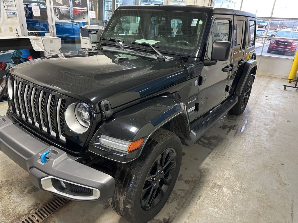 This Jeep Wrangler has many features and is well equipped, 1-Owner, Clean CarFax, Apple CarPlay and/or Android Auto, 4WD / 4x4 / AWD, Brake Assist, Premium Audio, Satellite Radio, Cruise Control, Premium / Alloy Wheels, 9 Speakers, Apple CarPlay/Android Auto, Auto-dimming Rear-View mirror, Automatic temperature control, Black 3-Piece Hard Top, Freedom Panel Storage Bag, Front dual zone A/C, Fully automatic headlights, Heated door mirrors, Navigation System, No Soft Top, ParkView Rear Back-Up Camera, Power door mirrors, Quick Order Package 29P, Radio: Uconnect 4C Nav w/8.4" Display, Rear Window Defroster, Rear Window Wiper/Washer, Remote keyless entry, Remote Start System, Wheels: 20" x 8" Fully Painted Aluminum. Recent Arrival! 2022 Jeep Black Clearcoat Wrangler Unlimited Sahara 4xe 4WD 2.0L I4 DOHC